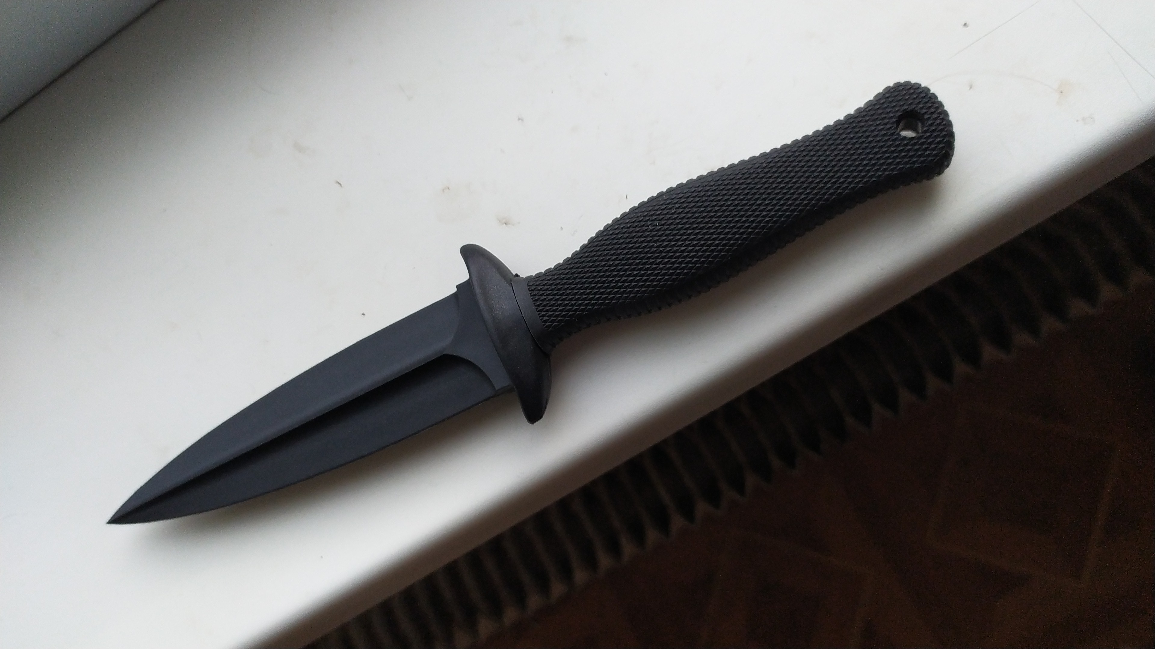 Полноразмерный кинжал с удобной рукоятью, можно тренироваться, можно вскрыть письмо или упаковку снеков.